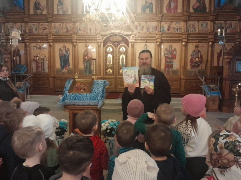 Каждый ребенок смог поставить свечу перед иконами и прикоснуться к святым образам. Завершилась экскурсия общей фотографией и вручением подарков — красивых книг, подготовленных специально батюшкой для маленьких прихожан. Ребятам это очень понравилось, ведь многие из них в храме оказались впервые.