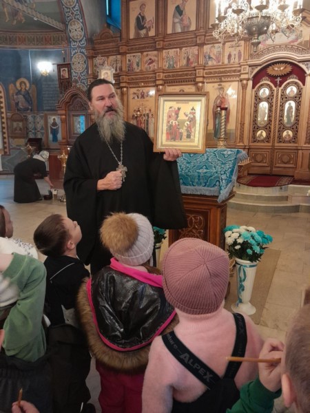 Ребят сердечно приветствовали настоятель протоиерей Александр Панзин и матушка Мария. Батюшка провел детей по храму, рассказал о его устройстве и назначении, поведал детям историю праздника Введения Богородицы в храм, доступно объяснил значение православных традиций и ответил на многочисленные вопросы юных гостей.
