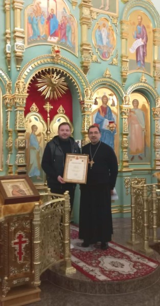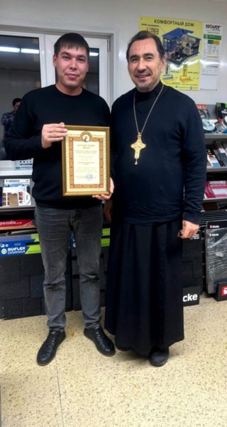 По благословению Главы Чувашской митрополии, Высокопреосвященнейшего митрополита Чебоксарского и Чувашского Савватия, настоятель прихода игумен Иннокентий (Орлов) вручил благотворителям от имени Высокопреосвященнейшего владыки Архиерейские грамоты и Благодарности, выразив признательность за вклад в развитие церковной инфраструктуры.