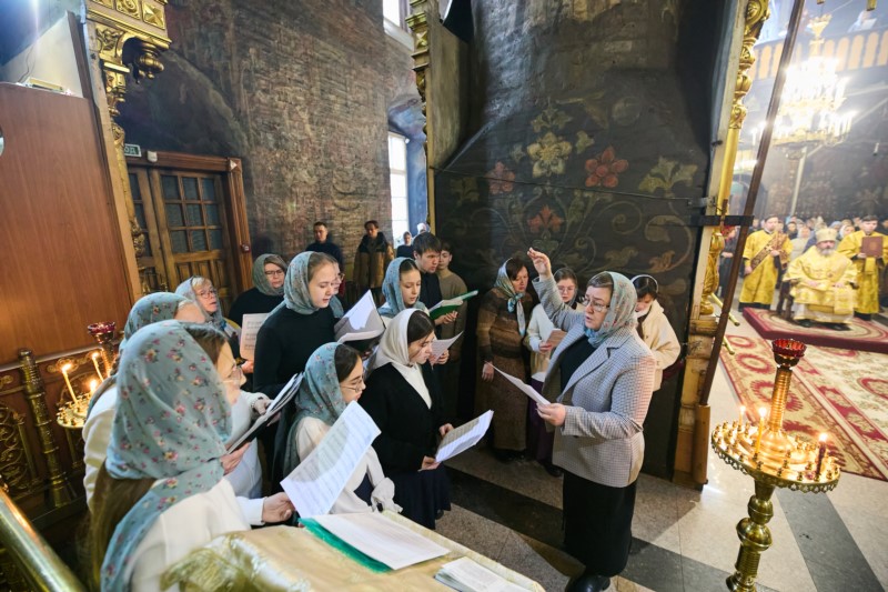 Богослужебные песнопения исполнили архиерейский хор под управлением Иины Давыдовой и хор воспитаников Воскресной школы собора под управлением Галины Ивановой.