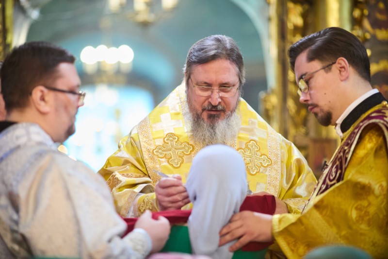 Его Высокопреосвященству сослужили ключарь собора протоиерей Вениамин Пегасов; председатель Епархиального церковного суда, председатель Епархиальной комиссии по брачным вопросам протоиерей Алексей Кошкин, диакон Евгений Поляков, протодиакон Валерий Краснов, диакон Федор Винокуров, диакон Сергий Панфилов и диакон Николай Трофимов.