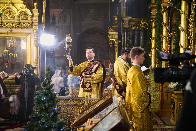 По заамвонной молитве духовенством было совершено славление Рождеству Христову.