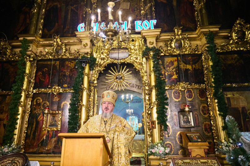 По прочтении Евангельского зачала митрополит Савватий огласил Рождественское послание Святейшего Патриарха Московского и всея Руси Кирилла архипастырям, пастырям и всем верным чадам Русской Православной Церкви.