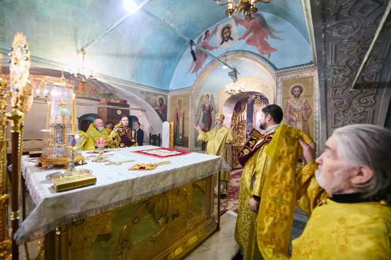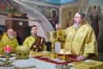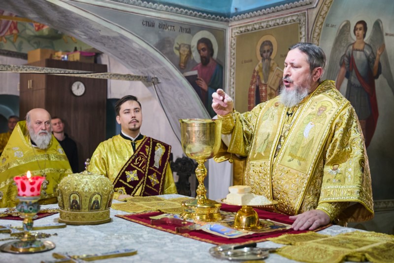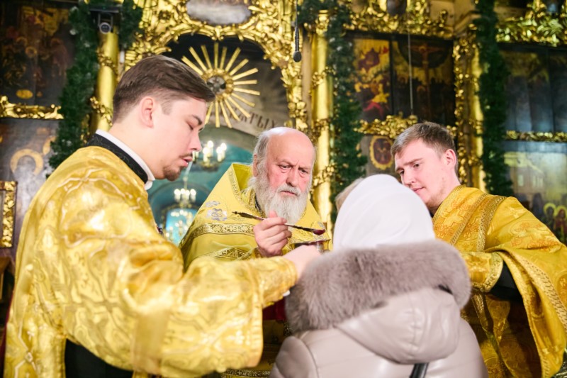 Его Высокопреосвященству сослужили: ключарь кафедрального собора Введения во храм Пресвятой Богородицы протоиерей Вениамин Пегасов и клирики собора председатель Епархиального церковного суда, председатель Епархиальной комиссии по брачным вопросам протоиерей Алексей Кошкин, иерей Иоанн Спринсян, руководитель воскресной школы при кафедральном соборе иерей Максим Подшибякин. Диаконский чин возглавил диакон Евгений Поляков.