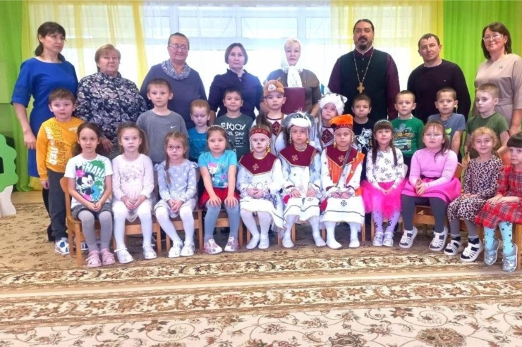 На праздник к воспитаникам детского сада прибыл настоятель храма Воздвижения Креста Господня села Красные Четаи протоиерей Максим Зарубин.