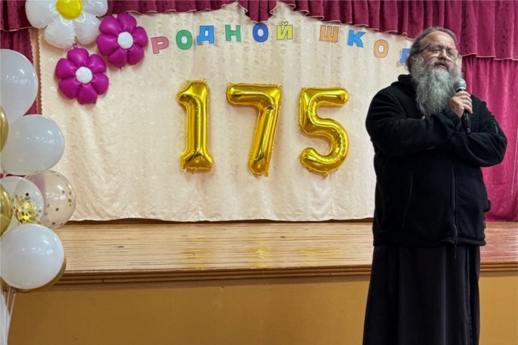 12 декабря 2025 года настоятель храма Владимирской иконы Божией Матери с. Анат-Киняры Чебоксарского муниципального округа иеромонах Феодосий (Аксенов) принял участие в торжественном праздновании 175-летия со дня основания Анат-Кинярской СОШ.