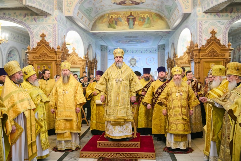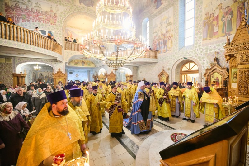 Его Высокопреосвященству сослужили: Преосвященнейший Стефан, епископ Канашский и Беловолжский; Преосвященнейший Феодосий, епископ Алатырский и Порецкий ; секретарь Чебоксарской епархии, благочинный городского округа, настоятель храма Новомучеников и исповедников Российских г. Чебоксары иеромонах Иов (Маркелов), ключарь кафедрального собора Введения во храм Пресвятой Богородицы протоиерей Вениамин Пегасов; настоятели и наместники обителей епархии, благочинные церковных округов, клирики кафедрального собора, настоятели городских храмов и священнослужители Чувашской митрполии. Диаконский чин возглавил диакон Евгений Поляков.