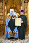 По завершении богослужения с днем архиерейской хиротонии митрополита Савватия поздравил епископ Стефан и зачитал поздравительный адрес Высокопреосвященнейшему митрополиту Савватию от членов Архиерейского совета Чувашской митрополии. В ответном слове Высокопреосвященнейший Владыка поблагодарил Преосвященных владык, духовенство и паству за теплые слова и поздравления.