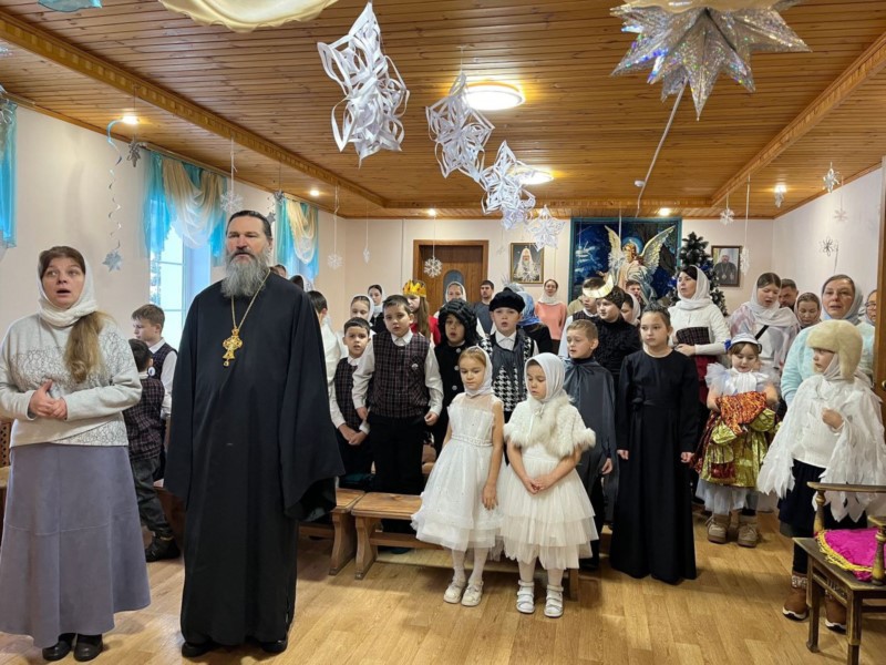 Завершился праздник исполнением рождественских песен и чтением стихотворений. В конце мероприятия отец Александр вручил детям сладкие подарки. После общей фотографии праздник продолжился тёплым чаепитием. Праздник Рождества Христова в Воскресной школе стал радостным и поучительным событием, объединившим детей и взрослых в атмосфере света, любви и благодарности Богу.