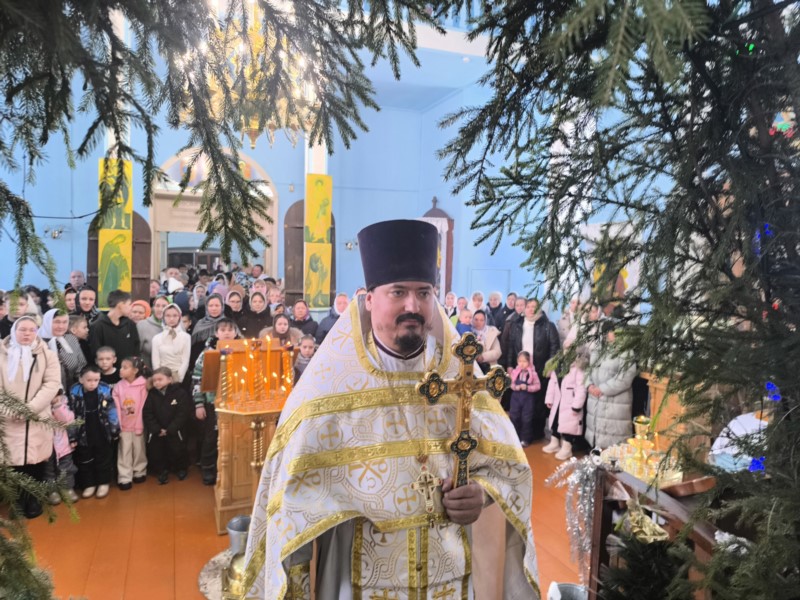 По окончании богослужения были пропеты тропарь, кондак и величание праздника и юными прихожанами было прославление родившегося Господа Нашего Иисуса Христа концертом, где исполнялись колядки и стихи.