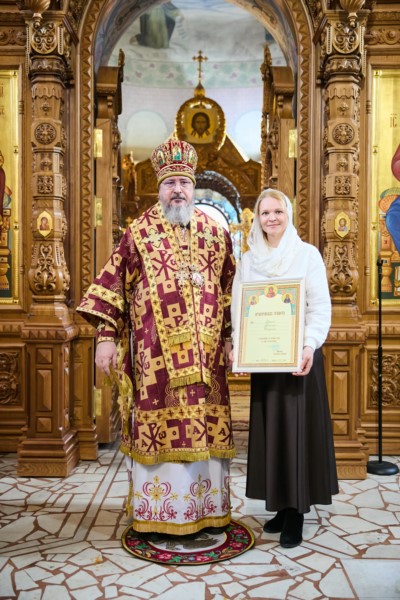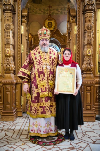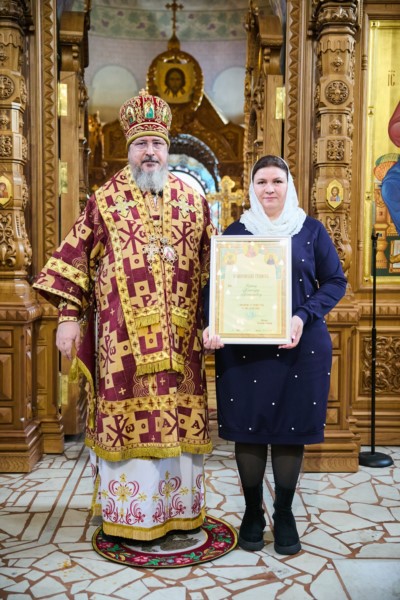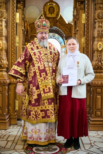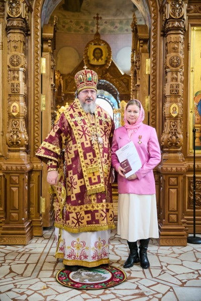 По завершении богослужения состоялось вручение церковных наград во внимание к понесенным усердным трудам на благо прихода в связи 25-летием освящения храма Новомучеников и исповедников Российских г.Чебоксары.