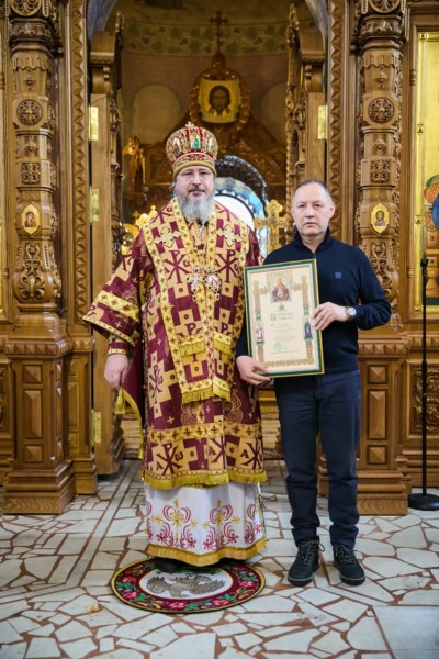 Владыку митрополита за то, что он возглавил соборное торжество храмового праздника.