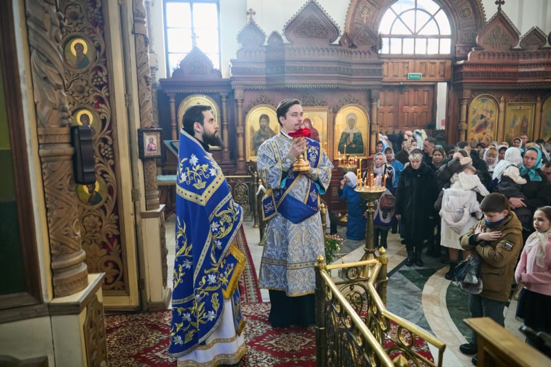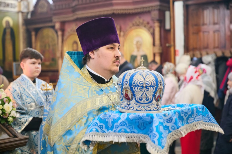 Перед причастием клирик храма иерей Димитрий Петров произнес праздничную проповедь.
