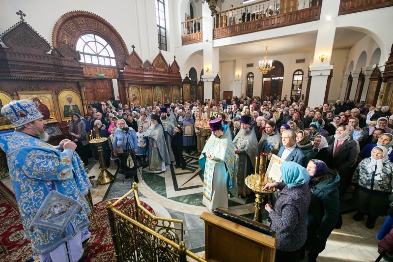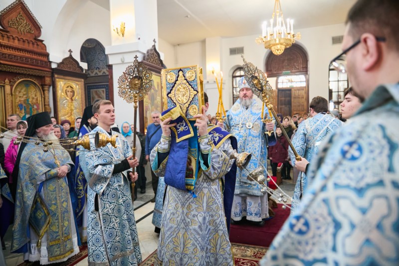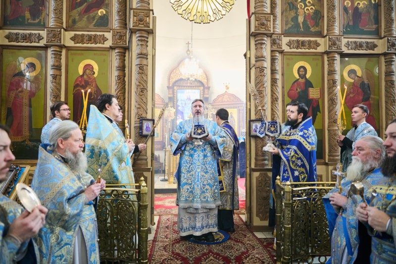 Затем Владыка поздравил духовенство и мирян с престольным праздником и обратился к верующим, собравшимся на богослужение с Архипастырским словом.
