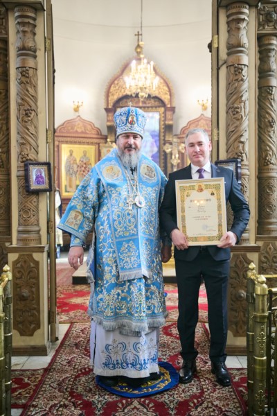 По окончании богослужения митрополита Савватия приветствовал настоятель храма иерей Александр Спиридонов. Отец настоятель поблагодарил Владыку митрополита за посещение и соборную молитву.