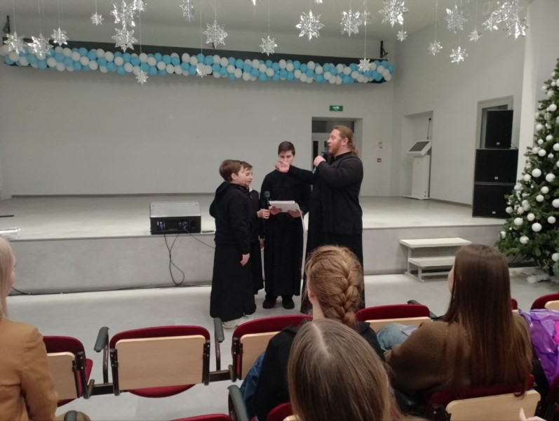 Далее диакон Сергий Горохов с сыновьями исполняли рождественские песнопения, а также произведения просветительского, духовно-нравственного и патриотического содержания, в том числе песни военных лет.