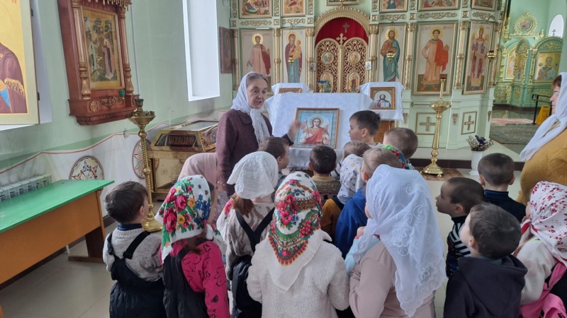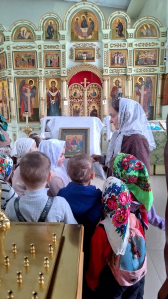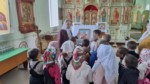 Директор Воскресной школы провела увлекательную экскурсию . Рассказала как правильно креститься, о правиле поведения в храме, рассказала о святых, изображенных на иконах, короткую историю храма. Дети с большим интересом и воодушевлением слушали рассказ, так как многие из них впервые оказались в православном храме.