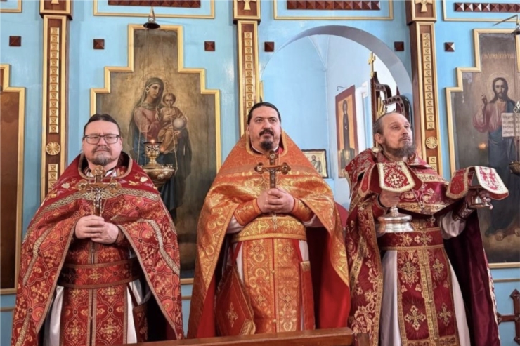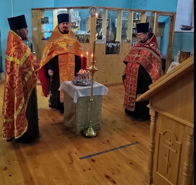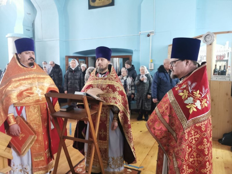 Отцу благочинному сослужили настоятель храма Рождества Пресвятой Богородицы с. Раскильдино протоиерей Александр Егоров и настоятель храма Воздвижения Честнаго и Животворящего Креста Господня села Красные Четаи Красночетайского муниципального округа протоиерей Максим Зарубин.
