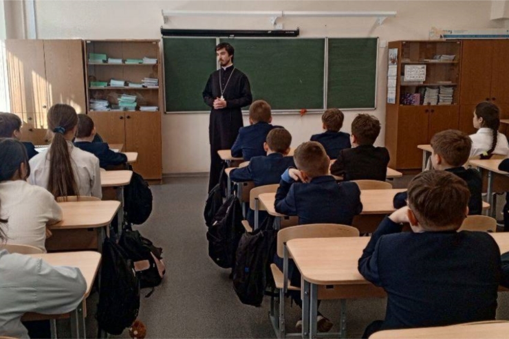 5 февраля 2026 года, клирик Свято-Троицкого собора г.Ядрин иерей Николай Чернов посетил учащихся пятых классов средней общеобразовательной школы №3 города Ядрин.