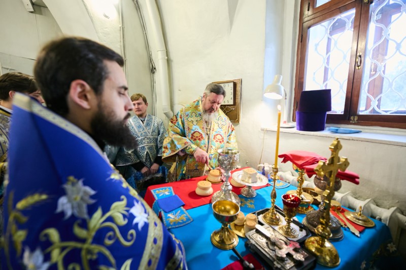 Его Высокопреосвященству сослужили: секретарь Чебоксарской епархии благочинный городского округа, настоятель храма Новомучеников и исповедников Российских г. Чебоксары иеромонах Иов (Маркелов); клирики обители протоиерей Сергий Пушков и иерей Александр Коробков и настоятель храма святого праведного Иоанна Кронштадтского г. Чебоксары протоиерей Николай Медведев; протодиакон Сергий Куликов; диаконы: Евгений Поляков, Михаил Смирнов, Андрей Амирханян и Николай Трофимов.