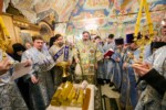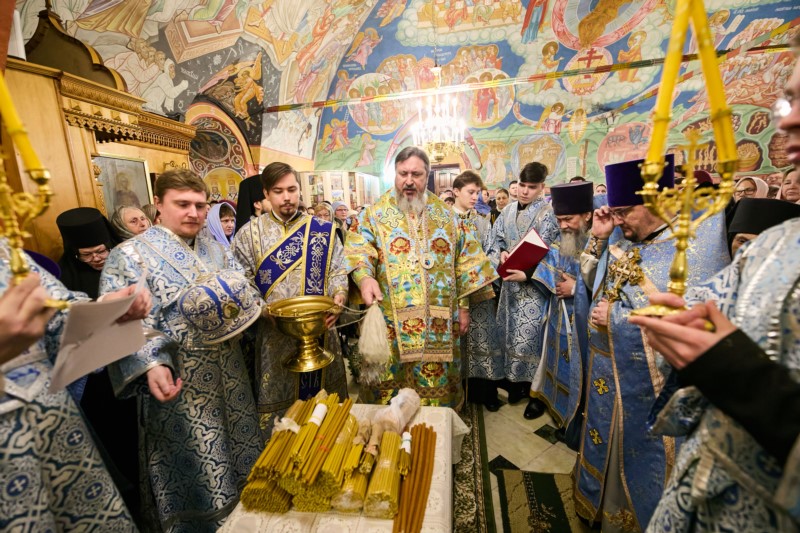По заамвонной молитве было совершено славление праздника и традиционное освящение свечей.