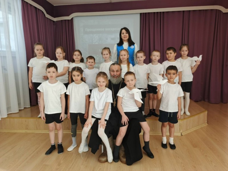 Отец Петр подробно объяснил дошкольникам значение Прощеного воскресенья — дня, посвященного примирению и очищению души от обид и негативных чувств. Детям предложили задуматься о своих поступках: вспомнить, кому они могли случайно причинить боль словом или делом, и мысленно или лично попросить прощения. Священник подчеркнул, что именно искреннее очищение сердца позволяет встретить новый жизненный этап с легкостью и добром.