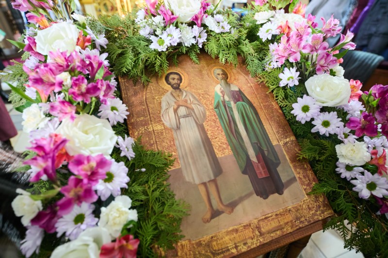 Богослужебные песнопения исполнили архиерейский хор собора под управлением Ксении Ильинлй и клиросный хор храма под управлением Антонины Пегасовой.