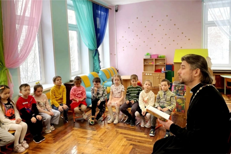 В МБДОУ «Детский сад № 174» г. Чебоксары, состоялось душевное и познавательное мероприятие — встреча воспитанников подготовительных групп с протоиереем Димитрием Нестеренко, руководителем Отдела религиозного образования и катехизации Чебоксарской епархии. Встреча прошла в рамках реализации договора о сотрудничестве детского сада с данным отделом и плана цикла мероприятий «Читаем с батюшкой».