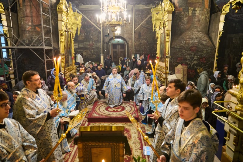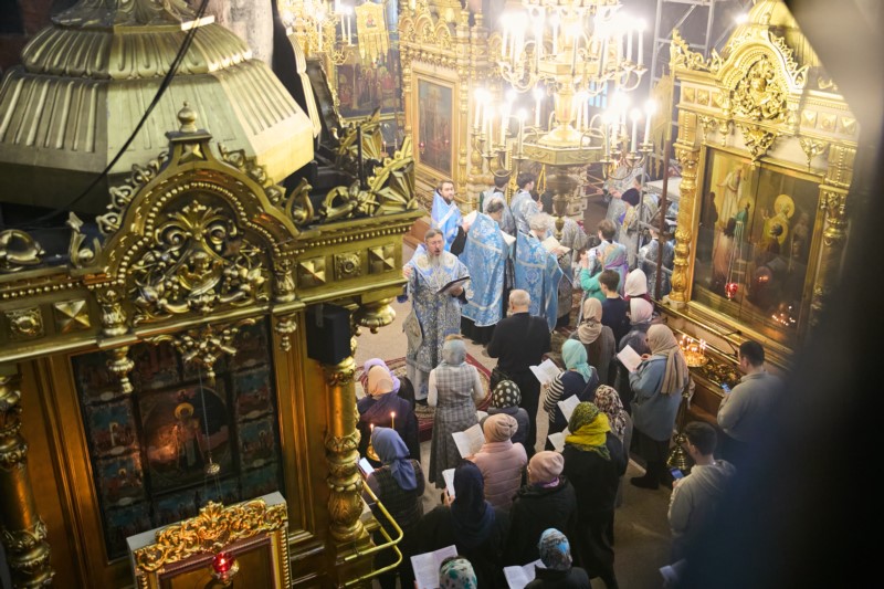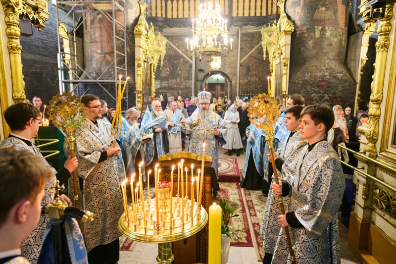 27 марта 2026 года накануне субботы 5-й седмицы Великого Поста — праздника Похвалы Пресвятой Богородицы, глава Чувашской митрополии, митрополит Чебоксарский и Чувашский Савватий, совершил утреню с чтением акафиста Пресвятой Богородице в Введенском кафедральном соборе г. Чебоксары.