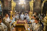 Его Высокпреосвященству сослужили ключарь кафедрального собора Введения во храм Пресвятой Богородицыпротоиерей Вениамин Пегасов и клирики собора председатель Епархиального церковного суда, председатель Епархиальной комиссии по брачным вопросам протоиерей Алексей Кошкин, иерей Иоанн Спринсян, руководитель воскресной школы иерей Максим Подшибякин и иерей Александр Михайлов. Диаконский чин возглавил диакон Евгений Поляков.