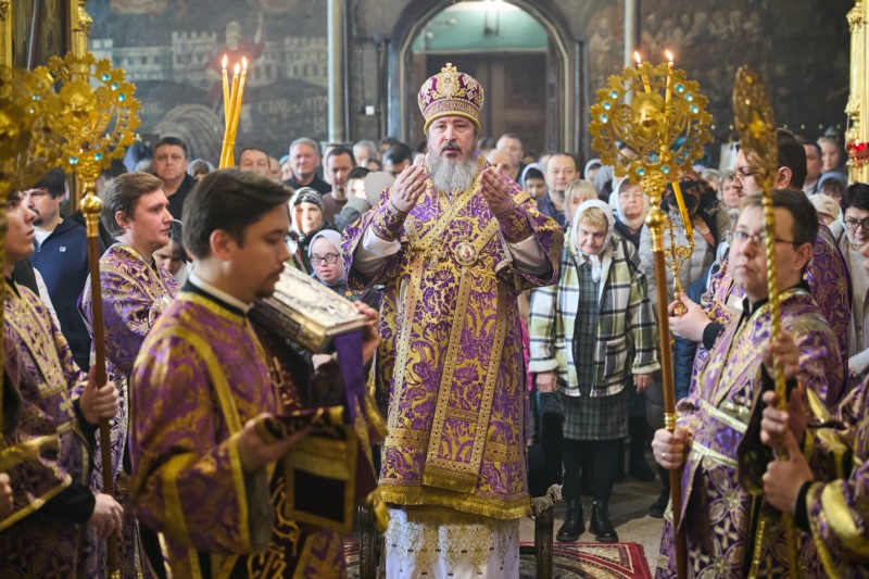 29 марта 2026 года в Неделю пятую Великого поста, в день памяти преподобной Марии Египетской, Божественную литургию святителя Василия Великого в кафедральном соборе Введения во храм Пресвятой Богородицы г. Чебоксары совершил глава Чувашской митрополии, митрополит Чебоксарский и Чувашский Савватий.