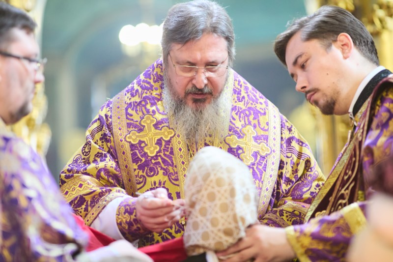 Его Высокопреосвященству сослужили ключарь кафедрального собора Введения во храм Пресвятой Богородицы протоиерей Вениамин Пегасов и клирик собора председатель Епархиального церковного суда, председатель Епархиальной комиссии по брачным вопросам протоиерей Алексей Кошкин. Диаконский чин возглавил диакон Евгений Поляков.