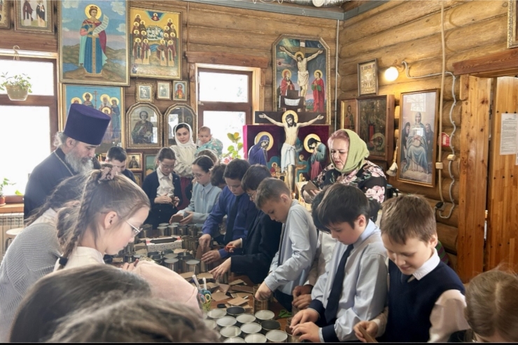 Ученики 4 «В» класса НОШ№2 посетили храм в честь Рождества Пророка, Предтечи и Крестителя Господня Иоанна г. Чебоксары, чтобы изготовить окопные свечи для бойцов.