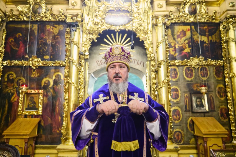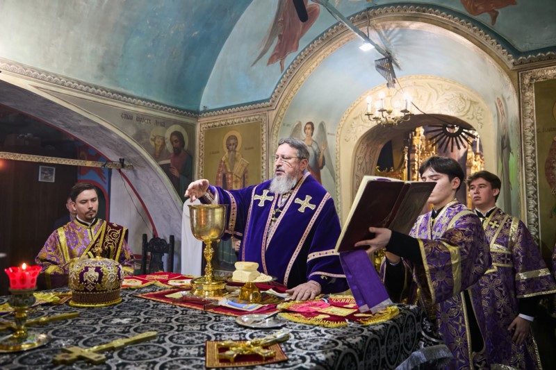 Его Высокопреосвященству сослужили клирики кафедрального собора иерей Иоанн Спринсян, в иерей Александр Михайлов , диакон Евгений Поляков, протодиакон Валерий Краснов,  диакон Федор Винокуров, диакон Сергий Панфилов, диакон Андрей Амирханян и диакон Николай Трофимов.