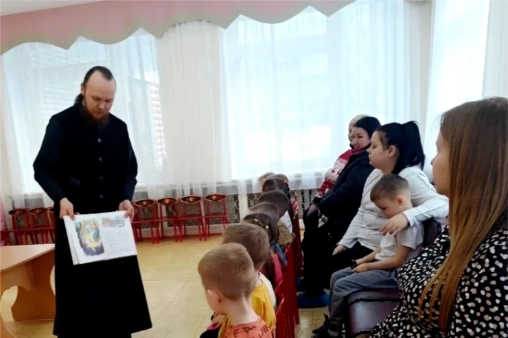 В детском саду №40 города Новочебоксарска состоялась теплая и душевная встреча. В гости к воспитанникам старшей группы «Радуга» и их родителям пришел иерей Дионисий Енцов — клирик собора святого равноапостольного князя Владимира.