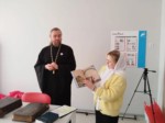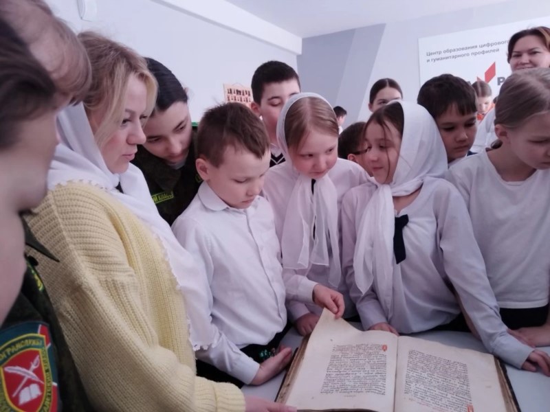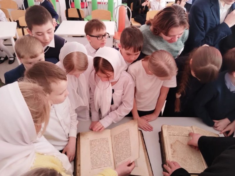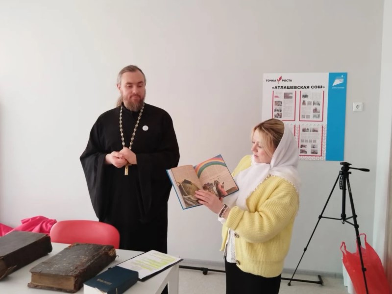 Ведущая мероприятия, учитель русского языка и литературы Людмила Сергеевна Иванова, вместе с Отцом Илией рассказали школьникам о Библии и напомнили о заповедях Христа. Ребята смогли познакомиться с разнообразием православной литературы и даже подержать в руках редкие экземпляры Библии, изданные в XIX веке.