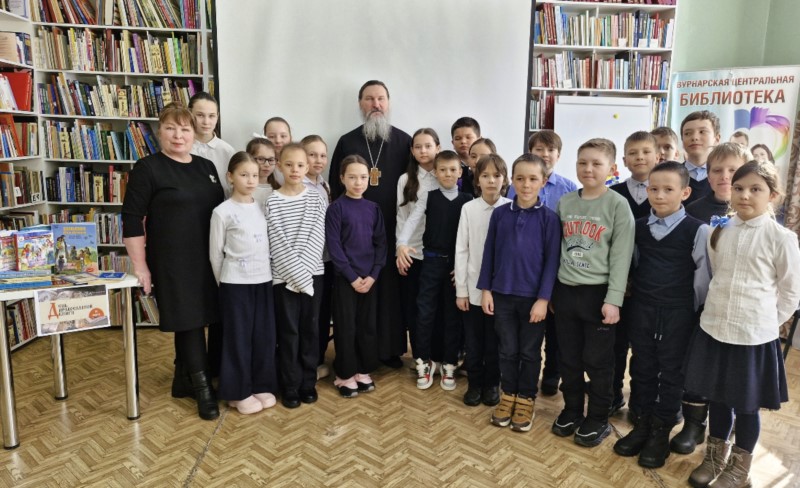 К этому дню в отделе детской литературы прошёл час духовной книги «Православная книга — путь к добру и миру» с учениками 4 класса МБОУ "Вурнарская СОШ 1 им. И. Н. Никифорова". Гостем встречи стал настоятель Вурнарского храма святого великомученика Георгия Победоносца протоиерей Александр Панзин.