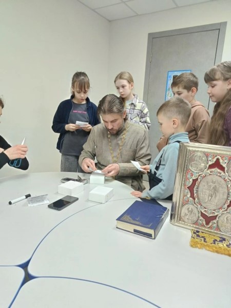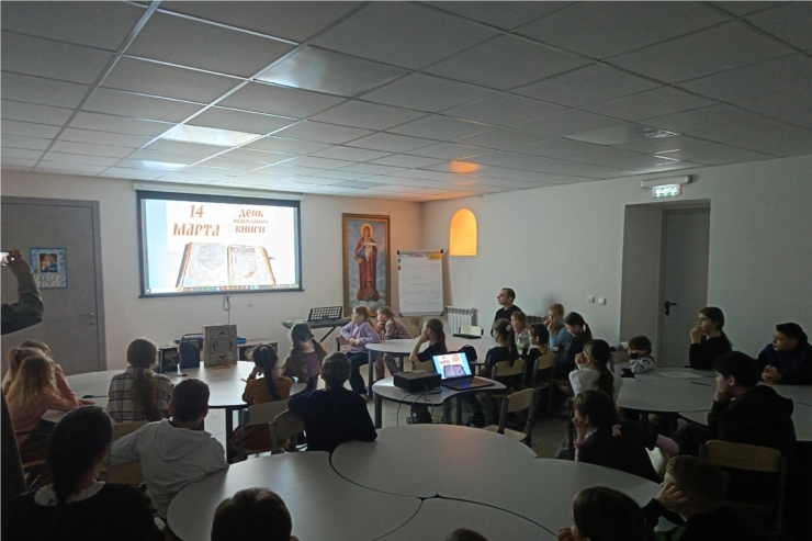 Председатель отдела религиозного образования и катехизации Чебоксарской епархии протоиерей Димитрий Нестеренко рассказал детям о первой печатной книге диакона Ивана Федорова «Апостол». Дети узнали о том, что само слово «апостол» в переводе с греческого языка означает «посланник», и было оно усвоено ученикам Иисуса Христа, которых Он послал на проповедь евангелия. Однако апостолы не только распространяли благую весть о наступлении Царства Божьего, но и писали письма новообразованным христианским общинам, в которых разъясняли вероучительные истины и раскрывали нравственные нормы христианской жизни. Со временем всю совокупность апостольских писаний объединили в одну книгу под названием «Апостол».