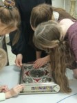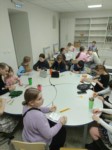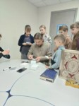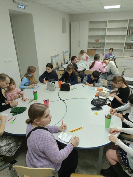 Детям была предоставлена уникальная возможность подержать в руках и рассмотреть большое напрестольное Евангелие в металлическом окладе, украшенном разноцветной эмалью. А после просмотра небольшого видеоролика об истории книгопечатания, дети попробовали себя в качестве книгоиздателей, изготовив карманный молитвослов-раскраску своими руками. Завершилось мероприятие традиционным чаепитием.