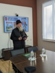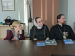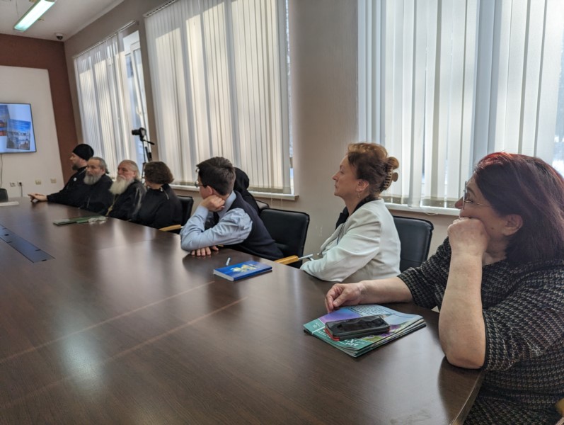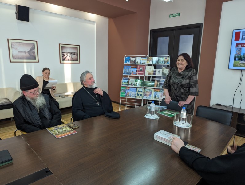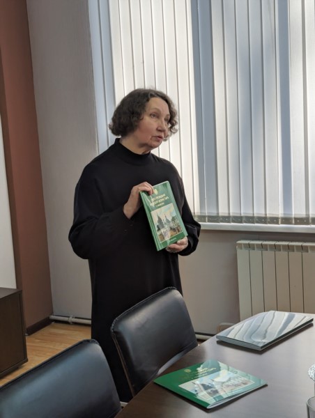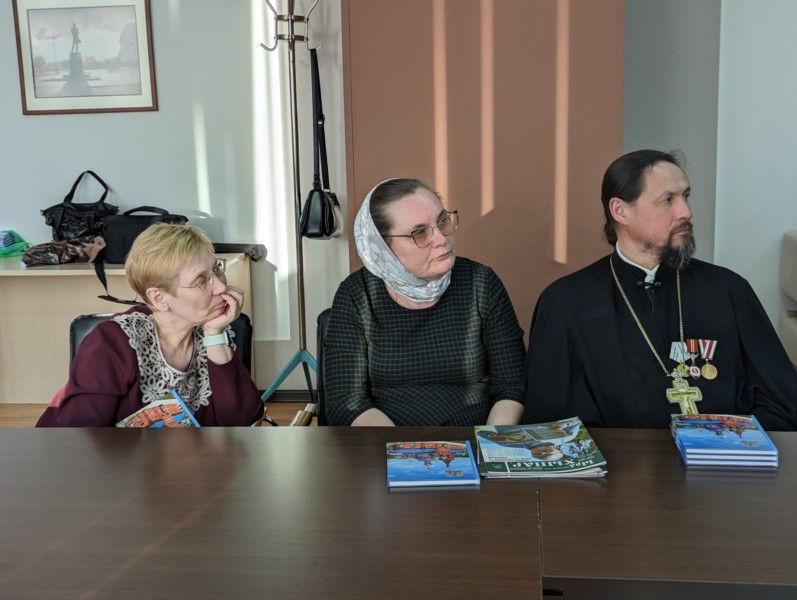 Составитель книги «Крестный путь владыки Вениамина» Зоя Никодимовна Токарева показала участникам встречи пробный экземпляр издания, рассказала о нем. Издание этой книги одобрено Издательским советом Русской Православной Церкви. В настоящее время тираж запущен в печать, презентация книги состоится в мае 2026 года в рамках X Межрегиональных Свято-Гурьевских образовательных чтений.