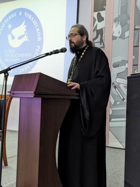 Собрание началось с общей молитвы «Царю Небесный». К участницам с пастырским словом обратился протоиерей Михаил Павлов, председатель епархиального отдела по церковной благотворительности и социальному служению, настоятель храма в честь иконы Божией Матери "Скоропослушница" г. Чебоксары.