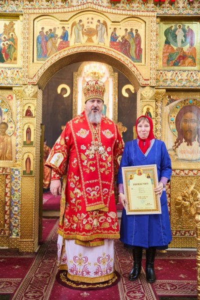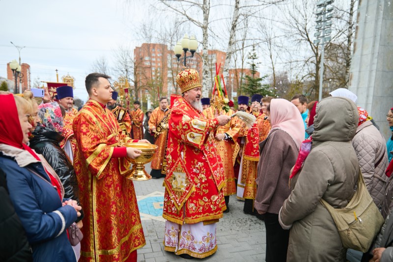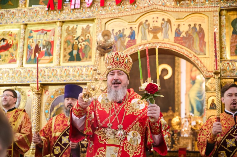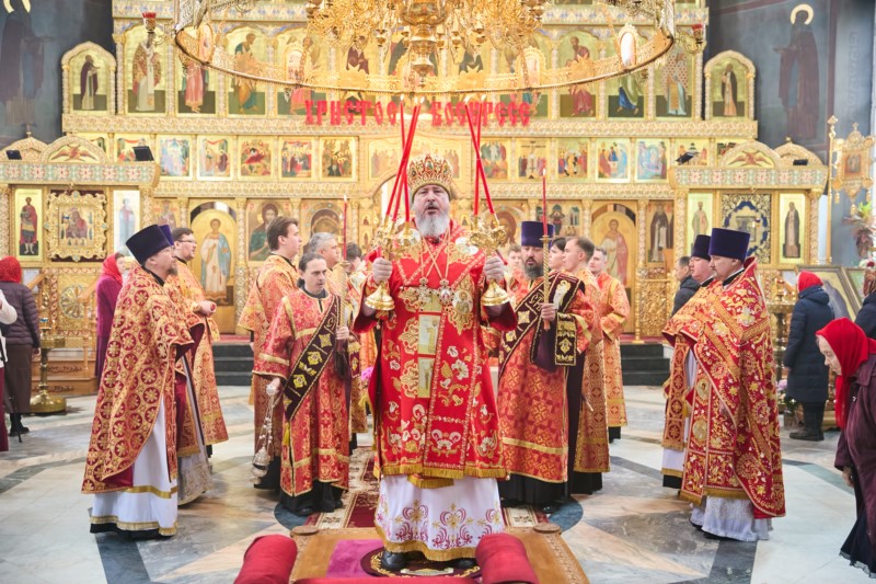 Затем митрополит Савватий поздравил клир и прихожан собора с Светлым праздником Пасхи Христовой и преподал каждому архипастырское благословение.