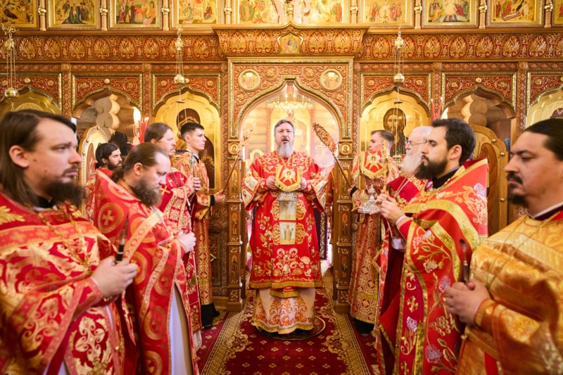 На сугубой ектении были произнесены особые прошения о Святой Руси, по сугубой ектении Владыка совершил молитву.
