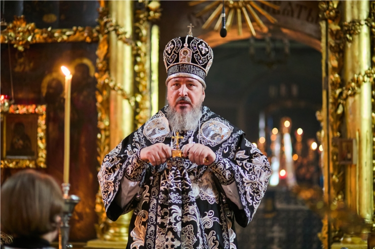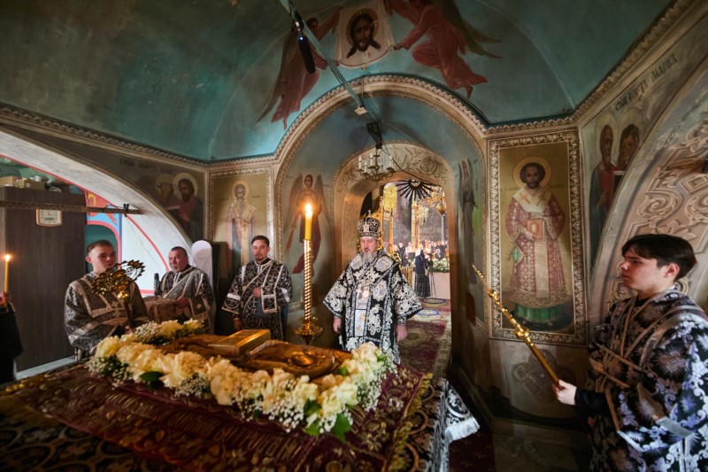 Его Высокопреосвяшенству сослужили ключарь кафедрального собора Введения во храм Пресвятой Богородицы протоиерей Вениамин Пегасов и клирики собора председатель Епархиального церковного суда, председатель Епархиальной комиссии по брачным вопросам протоиерей Алексей Кошкин , иерей Иоанн Спринсян, руководитель воскресной школы при кафедральном соборе иерей Максим Подшибякин и иерей Александр Михайлов. Диаконский чин возглавил диакон Евгений Поляков.