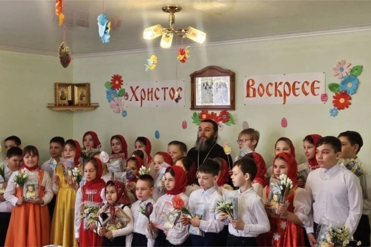 13 апреля 2026 г., в детском саду «Мечта» с. Большой Сундырь Моргаушского муниципального округа, в старшей группе «Солнышко» прошёл яркий и душевный праздник, посвящённый светлой Пасхе Христовой! Говорили о главном чуде — о Воскресении Христовом. О том, что добро всегда побеждает, а любовь — вечна.Особенным гостем стал отец Рустик Трофимов, клирик храма Пресвятой Троицы с. Б. Сундырь Моргаушского района, помощник благочинного по работе с молодёжью.Батюшка рассказал воспитанникам удивительную историю о Пасхе. Простыми и добрыми словами он объяснил, почему мы красим яйца и говорим друг другу: «Христос Воскресе!». Малыши узнали, что Пасха — это не просто вкусный кулич, а праздник победы жизни и добра.Глаза детей горели неподдельным интересом: они внимательно слушали о том, как жёны-мироносицы пришли ко Гробу, и как Ангел возвестил им великую радость, что Христос Воскрес!!!Затем ребята с большим интересом участвовали в пасхальных играх, пели песни, танцевали и читали стихи о Пасхальной радости. В зале царила атмосфера радости, добра и настоящего праздника! Такие встречи помогают детям не только весело провести время, но и обретать смыслы, знакомиться с культурой, традициями и научиться любить Бога.