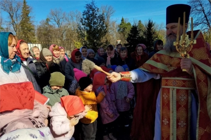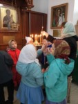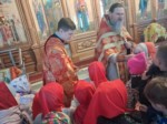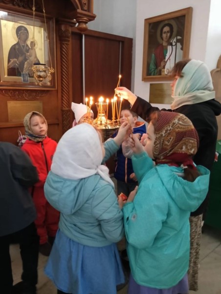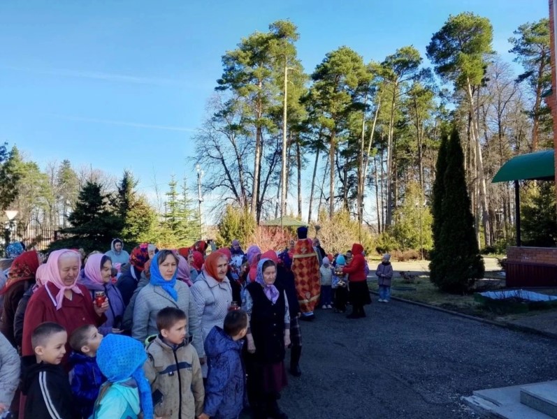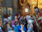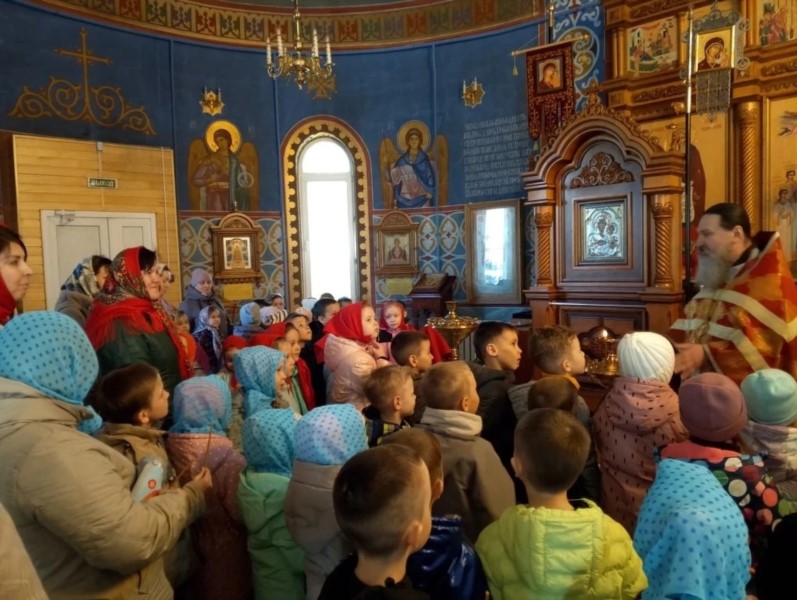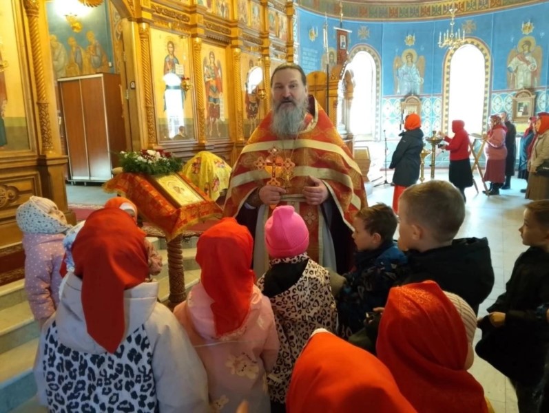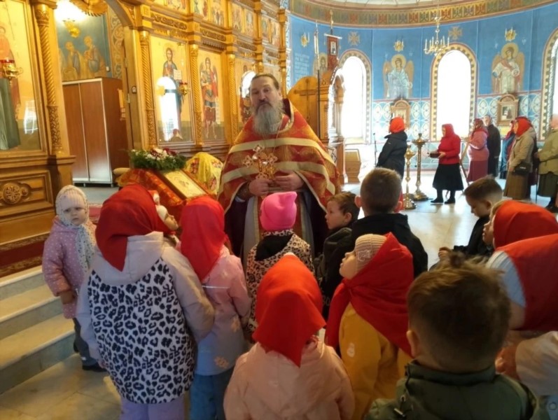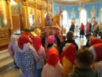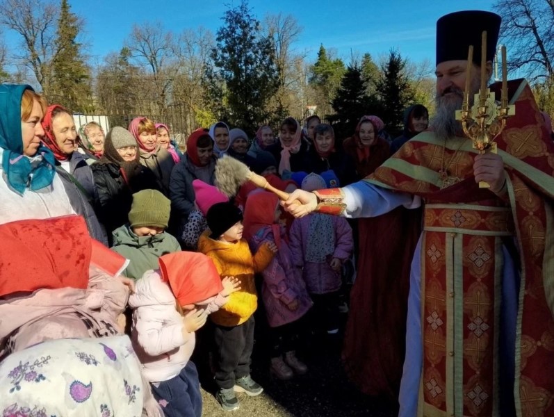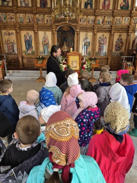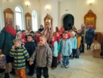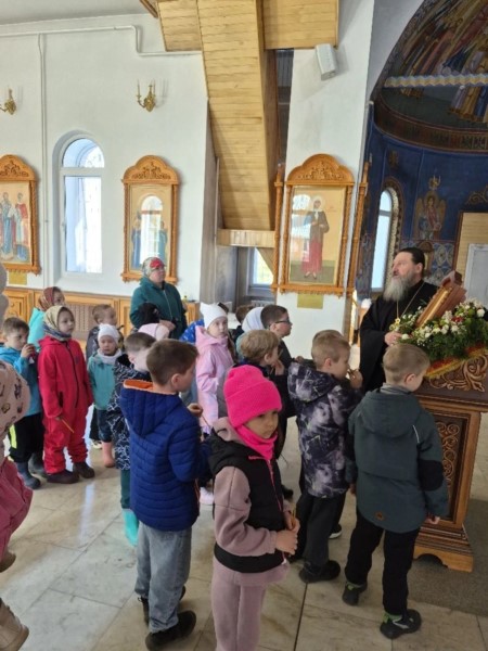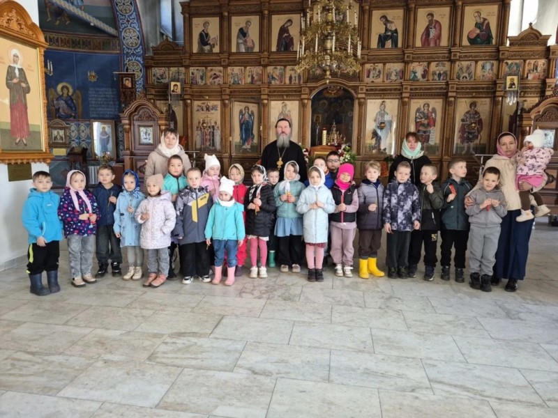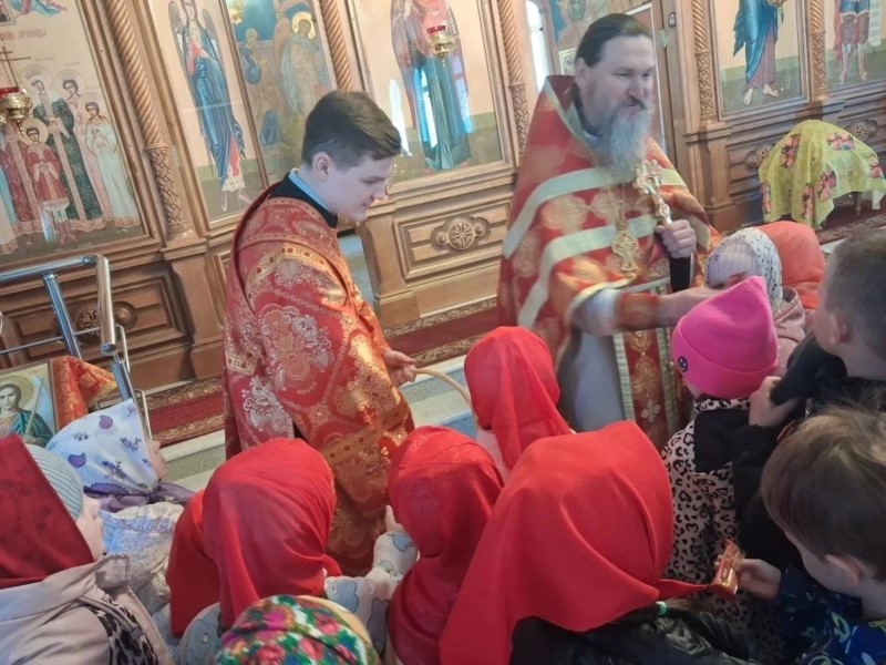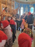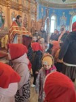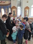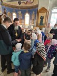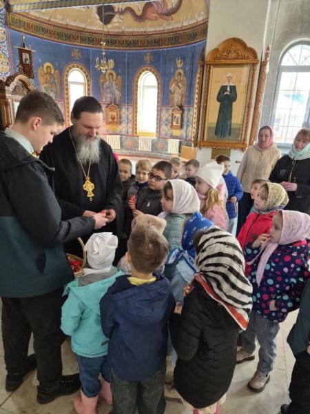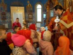 Пришли маленькие прихожане - воспитанники детских садов поселка, чтобы прославить Воскресшего Христа и похристосоваться с батюшкой.