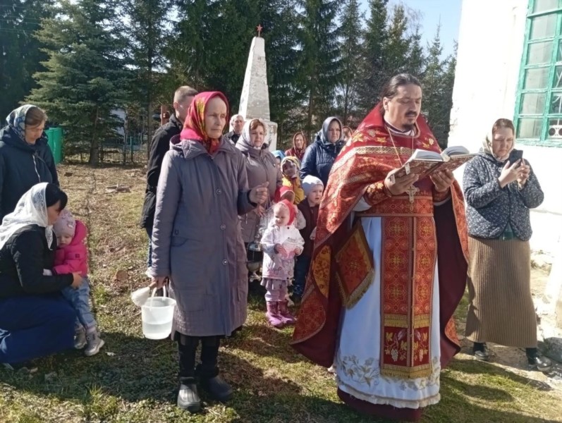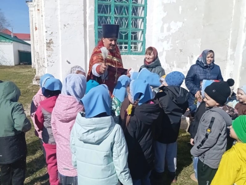 По окончании богослужения дошкольники приняли участие в Пасхальном крестном ходу, который возглавил настоятель храма протоиерей Максим Зарубин.