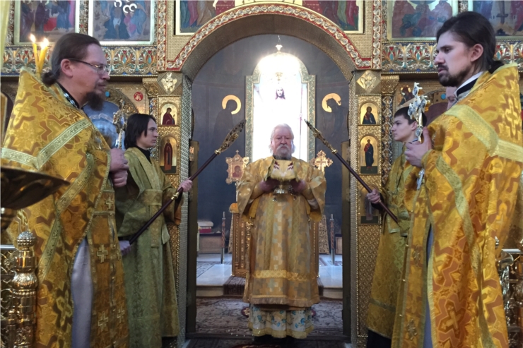 Накануне Его Высокопреосвященство совершил всенощное бдение в Введенском кафедральном соборе г. Чебоксары.