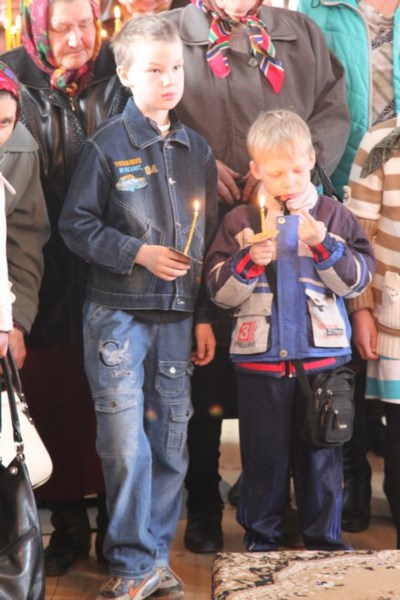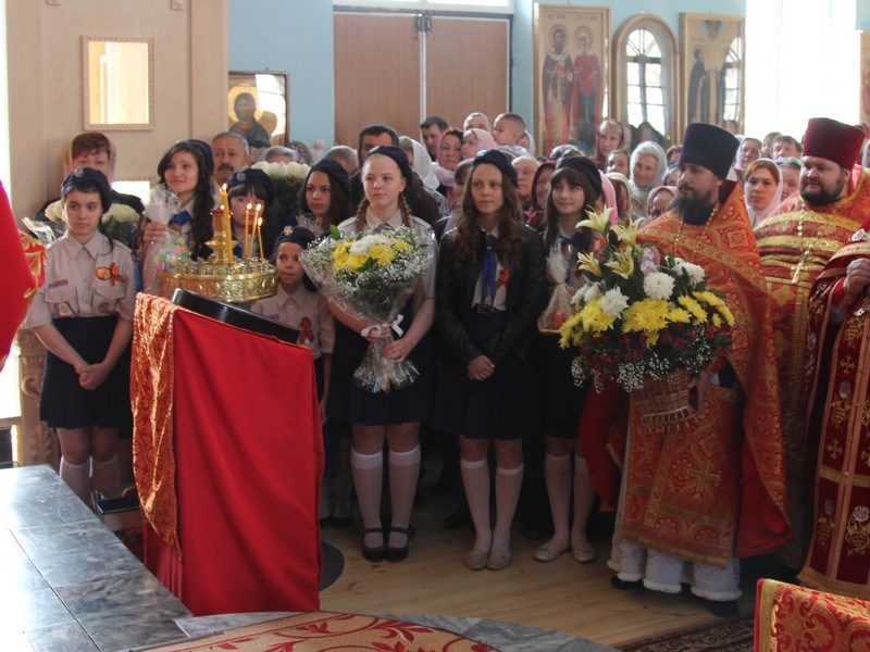 По завершении литургии состоялся Крестный ход вокруг храма, с пением ирмосов Пасхального канона.