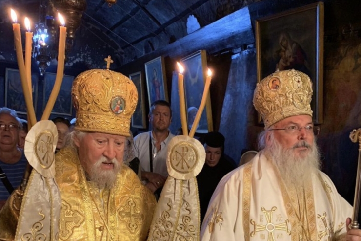 Высокопреосвященнейший владыка митрополит сослужил иераху Иерусалимской Церкви архиепископу Иорданскому Феофилакту.